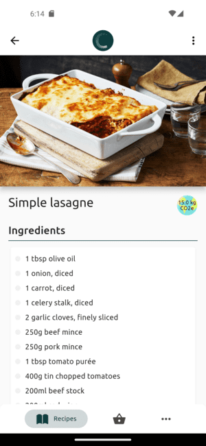 Store your own recipes or recipes from your favorite website all in one place! Carbonera calculates the carbon footprint of each recipe, and provides sustainable suggestions.