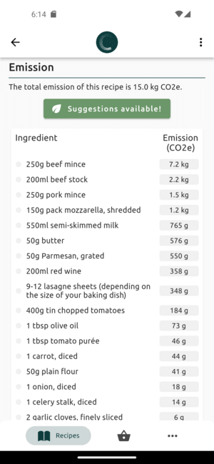 How do your recipes weigh against each other? Carbonera calculates the emission in CO2-eq units.
